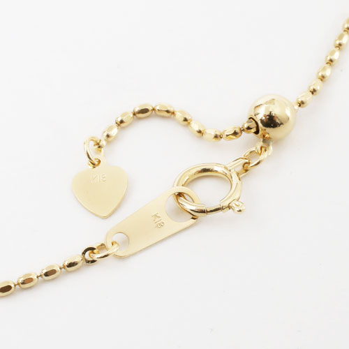 こちらのお店のネックレスを見ていた時、丁度セールになっていて細い18金ネックレスが欲しいかったのと、スライドチェーンで便利そうなので購入しました。小さいトップにピッタリでとても綺麗で長さ調節も出来てとても満足です。