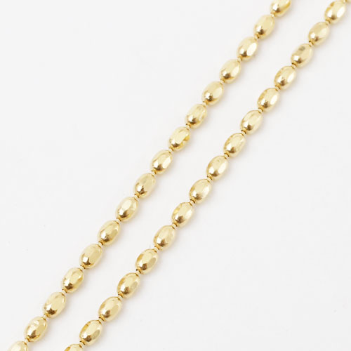 とっても便利なフリーアジャスター付で、お好みの長さに簡単に調節して頂けます。 いつも、その日のお洋服に合ったぴったりの長さでお使い頂けるすぐれもの!そのままネックレスとしても、お手持ちのペンダントトップを通していただいても。 揺れるたびにキラキラと輝く、この重量感、存在感は、18金だからこそ。オーバルタイプ(ラグビーボール風)のカットボールでお作りした高級感あふれるネックレスチェーンです。 18金イエローとホワイトの人気のツーカラーでご用意しました。地金が高くなっている今、この価格ほかではないですよ☆