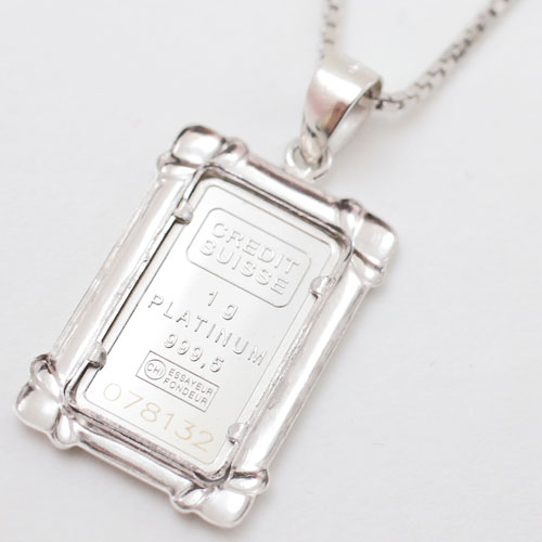 | 素材 | インゴット(プラチナ999.5 1g)枠(プラチナ900)、チェーン(シルバー925ロジウムメッキ仕上げ) |