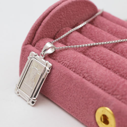 表のデザインは自由の女神、裏にはクレジットスイス銀行の刻印とシリアルナンバーがあり、確かな品質が保証されています。どんな服装にも合わせやすく、カジュアルはもちろん、オフィススタイルやフォーマルなスタイルに合わせて頂いても素敵です!しかも、ペンダントとしてもキュートなサイズ。