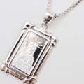 クレジットスイス銀行製、純プラチナのインゴットにプラチナ900のデザイン枠を付けイタリア製のベネチアンチェーンをセットした高級仕様です。世界的にプラチナが高騰している昨今、資産価値もありお守りとしてやプレゼントにも喜ばれます。