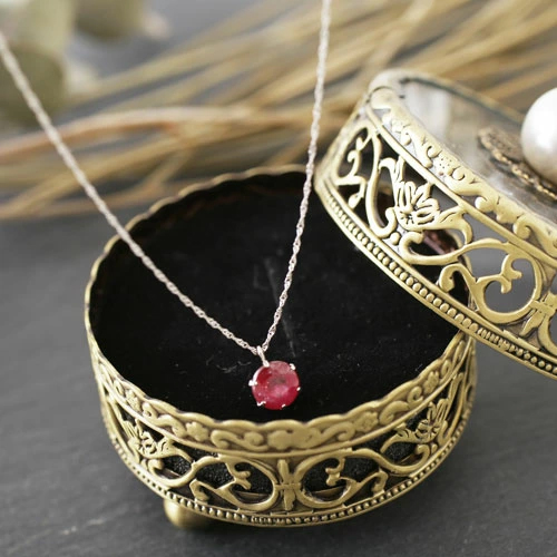 ルビーは、輝きの美しい、人気の落ち着いたカラーを使用!胸元での存在感は抜群です!!