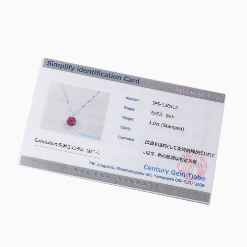 | 製品名: | プラチナ ネックレス ルビー 1ct ペンダント 純プラチナ台 鑑別書付 1455-PP10 |