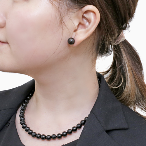| 素材 | ・天然ジェット ・ネックレス/約8mm珠 ・ピアス/約10mm珠 |