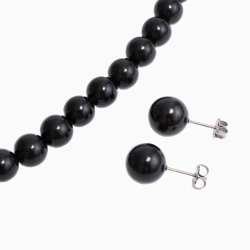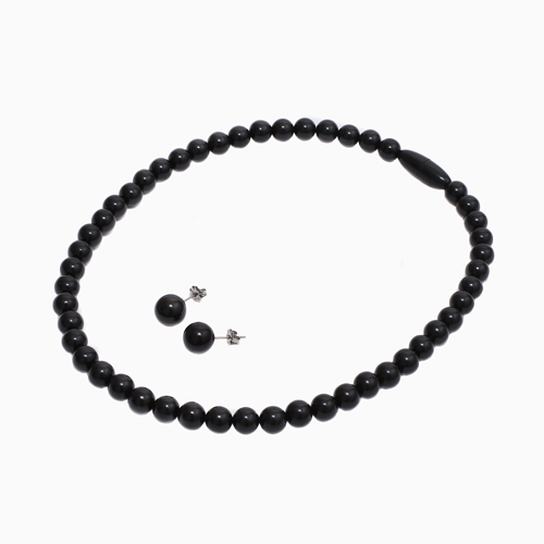 天然ジェット 8mm 10mm 42cm ピアス&ネックレス セット 1459-FJ10