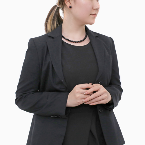 日本ではあまり知られていませんが、現代でも英国王室や日本の皇室でも好まれ、お使い頂いています。そのつややかな光沢から「黒い琥珀」とも呼ばれ、パールよりも控えめで落ち着きのあるジェットのネックレスは、喪の席に最適のジュエリーと言われております。また、使うほどに光沢が増し、宝石が本来もつ美しい黒の輝きを放ちます。喪の席はもちろん、シンプルで使いやすいデザインは普段のおしゃれにも最適!ひとつ持っていればとても安心。特別な時のために揃えておきたいジュエリーです☆