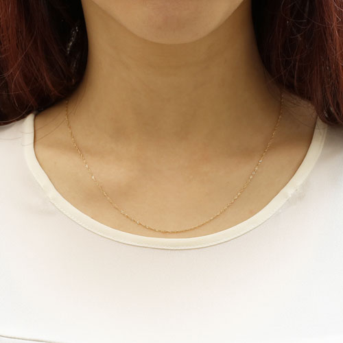高級素材である、18金(K18)を惜しみなく使用した、気品あふれるチェーン。華やか過ぎない、洗練されたデザインのチェーンは、お持ちのどんなペンダントトップにも合わせやすく、普段の装いをぐっとエレガントに引き立ててくれます。
