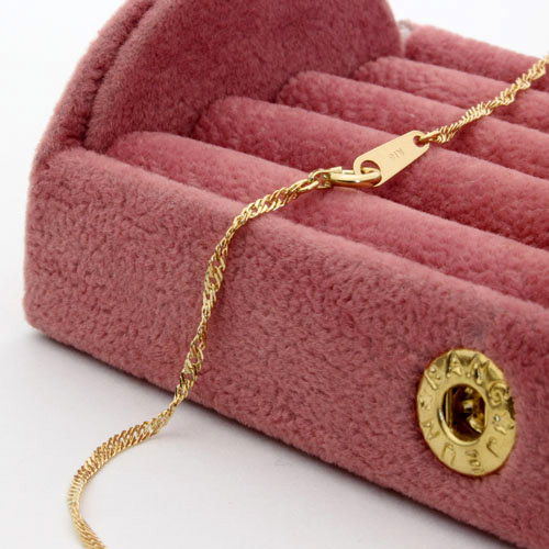 高級素材である、18金(K18)を惜しみなく使用した、気品あふれるチェーン。華やか過ぎない、洗練されたデザインのチェーンは、お持ちのどんなペンダントトップにも合わせやすく、普段の装いをぐっとエレガントに引き立ててくれます。