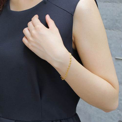 熟練職人が手で組上げるセミハンドメイドで、約18cmの定番サイズで、なめらかに手首に沿うブレスレットは、着け心地も抜群です。