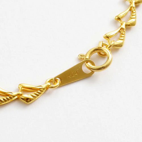 最高級素材である、純金を惜しみなく使用した、高級感あふれるデザインブレスレット。最高級素材・純金のみでお作りした波をモチーフにしたブレスレットは、どんなスタイルにも合わせやすく、普段の装いをぐっとエレガントに引き立ててくれます。熟練職人が手で組上げるセミハンドメイドで、約18cmの定番サイズで、なめらかに手首に沿うブレスレットは、着け心地も抜群です。別売りでご用意している、ネックレスとつなげるとセミロングネックレスとしてもお使いいただけます。また、プレート部分には、「K24(刻印)」が有り、素材と品質の良さも証明されています!高価な純金をたっぷりと使用し、熟練職人が一つ一つ手作業で組上げた高品質ブレスレット!大変お買い得です!!