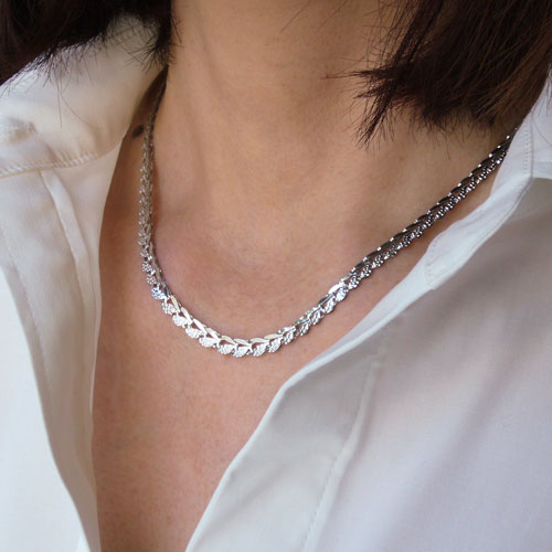 最高級素材である、純プラチナ(PT999)を惜しみなく使用した、気品あふれる豪華ネックレス。華やか過ぎない、洗練されたデザインのネックレスは、落ち着いた大人の女性にぴったりです。普段の装いをぐっとエレガントに引き立ててくれます。