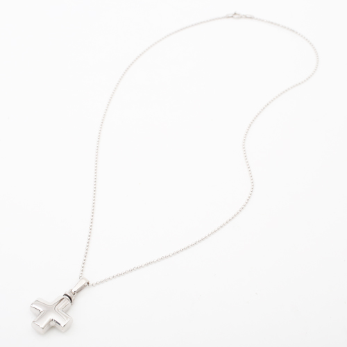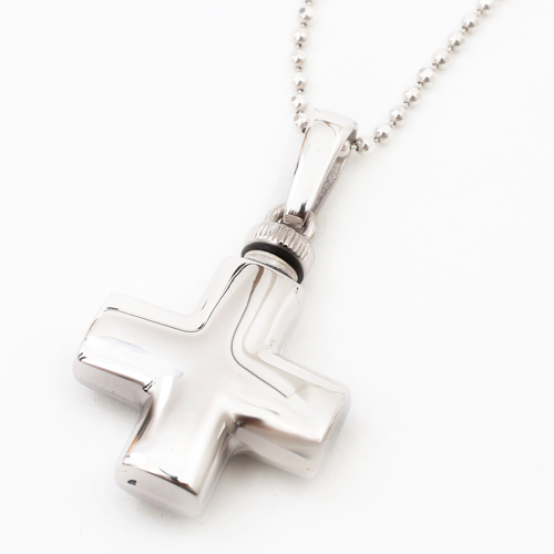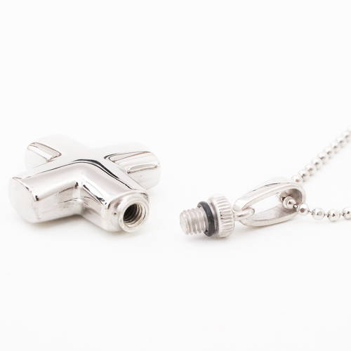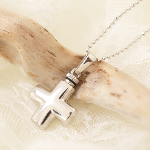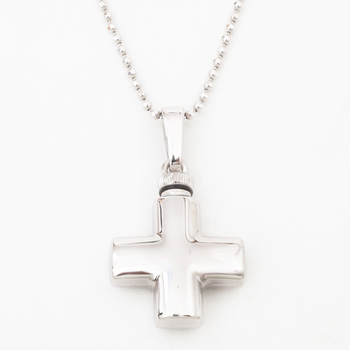 シンプルでペンダントとしても魅力の両面光沢仕上げの小さなクロス・カロートペンダント。ドイツ製ならではの作りの良さとハイセンス、他ではなかなか見つかりません!!愛する人を偲び、いつまでも身に着けて、未来へ生きる力と勇気を与えてもらえるでしょう。しっかりとした作りで高級感があります。デザインは男女性別関係なくお使い頂ける、定番人気のクロスモチーフです。珍しい形をしたクロスは他にはなかなかありません!シンプルだけど上品に輝く両面艶有仕様です♪バチカン部分をねじって開け中に遺灰や遺髪を収めることができます。開口部は非常に小さいので、粉末状にしたものなどを納めてください。