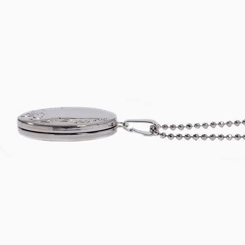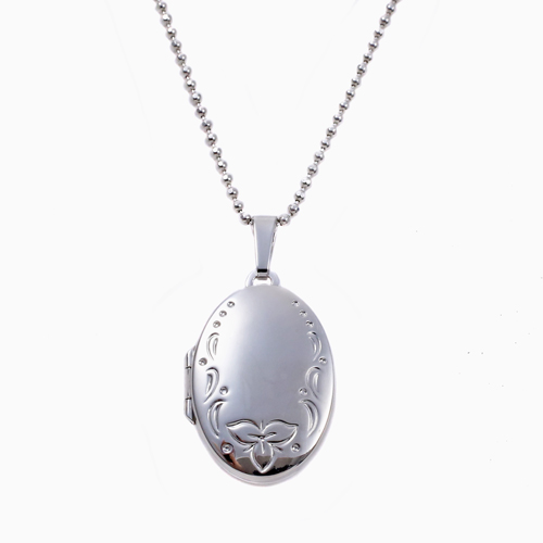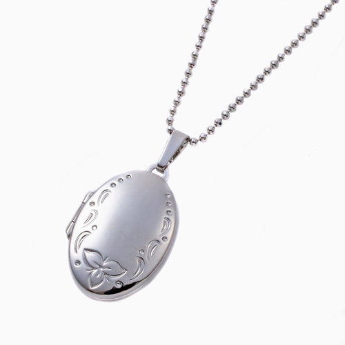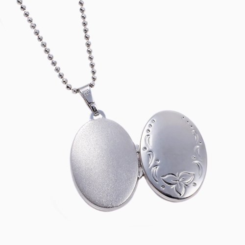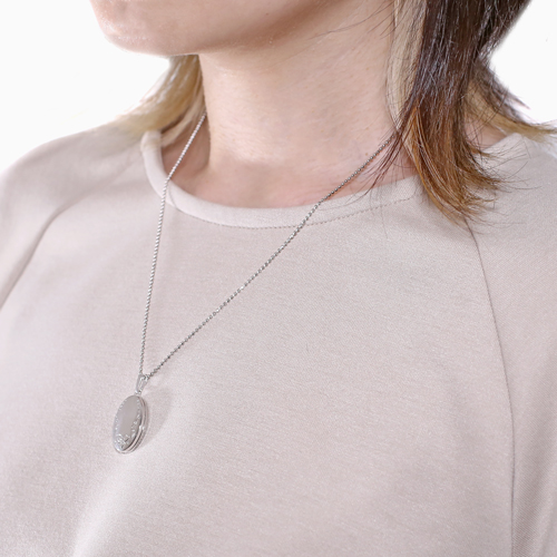 花のイメージ模様のオーバルロケットペンダント。シンプルなシルバー素材との組み合わせは派手すぎず、合わせる洋服によってキュートな感じにもシックでクラシカルな雰囲気にもなります☆立体感のある模様がボリュームたっぷりで高級感がありますよ。裏側は艶消し加工を施していますので傷が目立ちにくく、その日の気分で使い分け。大切な人、大好きなペットの写真をこっそり入れて、お洒落にロケットペンダントを楽しんでください☆