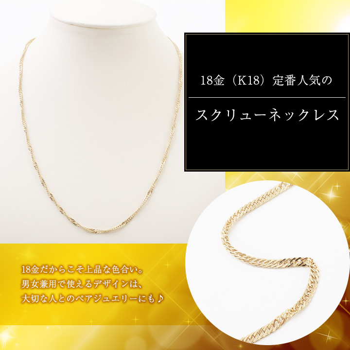 | 製品名: | 18金 K18 スクリュー ネックレス 男女兼用 50cm 8.7g 1655-NG11 |