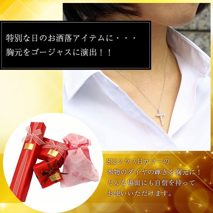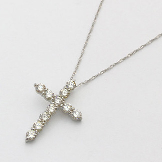 一粒でも十分存在感のある、大粒の天然ダイヤモンドを11石、合計1カラットも使用した、とてもゴージャスで大ぶりのクロスペンダント。さらに、金属アレルギーを起こしにくいと言われている、高級素材、それも、純度99.9%の純プラチナをトップに使用!とてもしっかりとしたつくりになっています。さらに、チェーンにもプラチナ850を使用しています。全てに 本物の高級素材だけを使用した上質なペンダントは、どんな場所や場面にも、自信をもってお使い頂けます!素材・デザインすべてにこだわったシンプルなクロスネックレスだから、きっと、長く、大事にお使い頂けますよ!