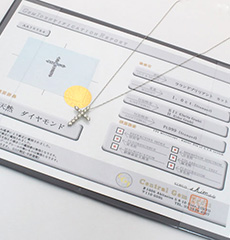 鑑別書付で安心!ダイヤの品質を証明する専門機関の鑑別書付なので、プレゼントにもおすすめです! |
