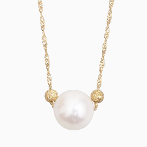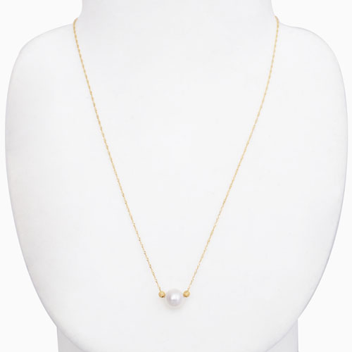 7.5mm珠のあこや真珠は、見た目にもゴージャス、着ければその存在感はかなりのもの!首元をぱっと明るく、大人の華やかさを演出してくれます。パールの左右にはイタリア製の18金のスターダストボールを配してさらに豪華さをプラス。チェーンには金属アレルギーを起こしにくいと言われている高級素材、純度75%の18金を使用しています。全ての素材にこだわった、シンプルな一粒パールのペンダントネックレスは、年齢やファッションに左右される事がないベーシックアイテム。