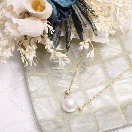 | 素材 | ●トップ/あこや真珠、 18金スターダストボール2個 ●チェーン/18金スクリューチェーン |