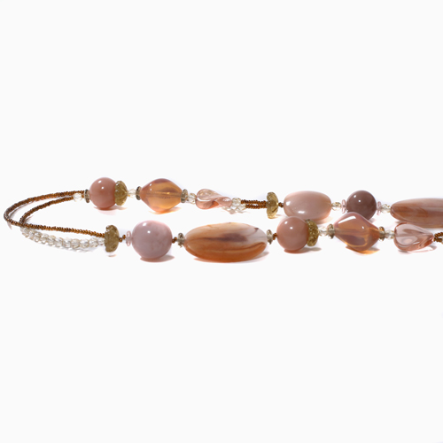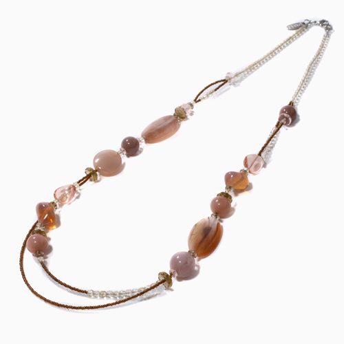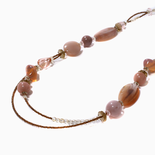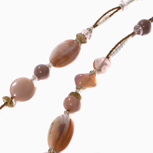 世界的に人気のセミ2連タイプを淡いピンクの上品な色合いとシェイプで仕上げました。ベネチアンガラス、合金、樹脂を絶妙なバランスで使い、ボリューム感と軽い着け心地を実現。 これからの季節、プレゼントにもぴったりですよ。