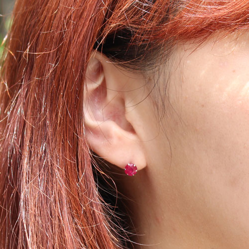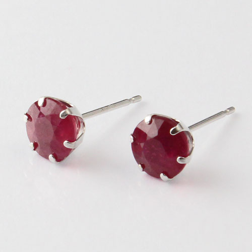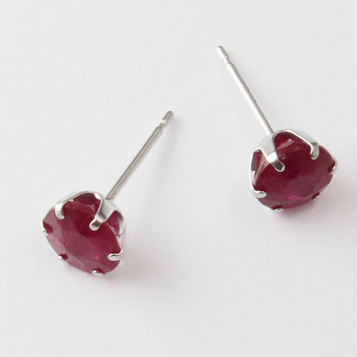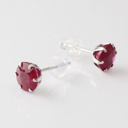 18金 ホワイトゴールド ピアス 天然ルビー 合計2ct シリコンキャッチ式 1701-IG11