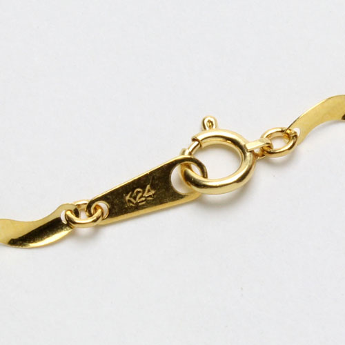 - 高純度製品は18金などに比べ柔らかい為、無理に引っ張ったり重いものを上に載せたりしないでください。特にブレスレットは引っかけることがありますのでご注意ください。