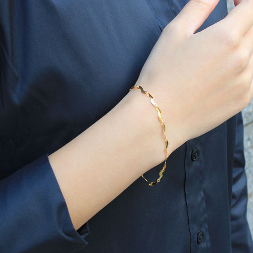 熟練職人が手で組上げるセミハンドメイドで、約18cmの定番サイズで、なめらかに手首に沿うブレスレットは、着け心地も抜群です。