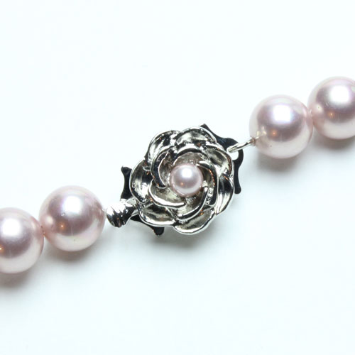 当店のシェルパールは、熟練職人が何層にもコーティングした厚巻きで、珠のつなぎは本真珠ネックレスと同じ本結び(引き戻し加工)を施し、しなやかさを実現しています。本真珠に比べ汗や化粧品に強くお手入れも簡単、この価格からは考えられない品質と満足感を。