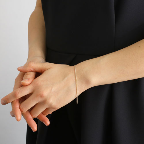どんな服装にも合わせやすく、カジュアルはもちろん、オフィススタイルやフォーマルなスタイルに合わせて頂いても素敵です!印象の違う、華やかなブレスレットとしてお使い頂けます。
