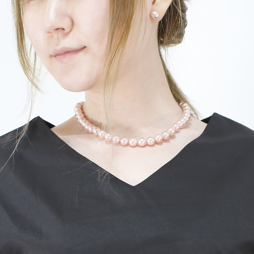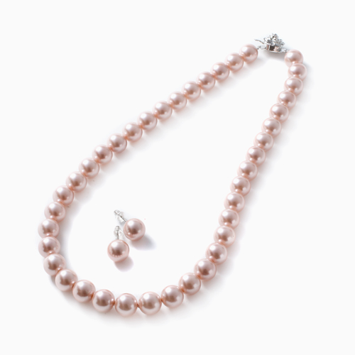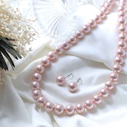 シェルパール 10mm珠 ピンク ネックレス&ピアス セット 1732-NP11