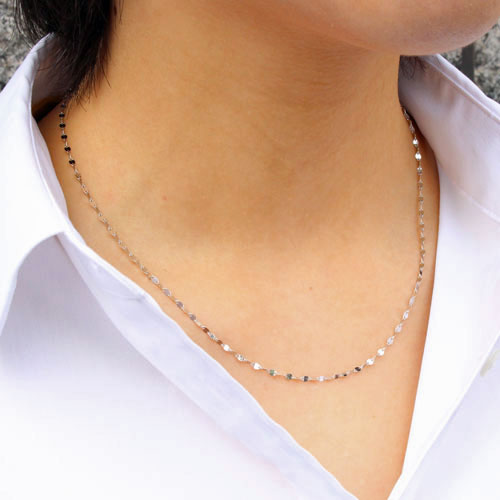 最高級素材である、純プラチナ(純Pt)を惜しみなく使用した、気品あふれるネックレス。華やか過ぎない、洗練されたデザインのネックレスは、落ち着いた大人の女性にぴったりです。普段の装いをぐっとエレガントに引き立ててくれます。42cmという、ゆったりサイズで、なめらかに肌に沿うネックレスは、着け心地も抜群!! また、プレート部分には、「純Pt(刻印)」が有り、素材と品質の良さも証明されています。バイシクル・ペダルをイメージしたデザインを縦と横に交互に連ねてより立体感を出しています。