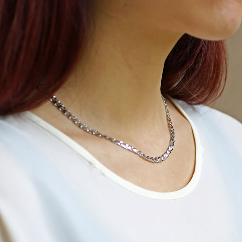 最高級素材である、純プラチナ(Pt999)を惜しみなく使用した、気品あふれるネックレス。熟練職人がパーツを一つ一つ丹念に組上げた華やか過ぎない、洗練されたデザインのネックレスは、落ち着いた大人の女性にぴったりです。普段の装いをぐっとエレガントに引き立ててくれます。42cmという、ゆとりのあるサイズで、なめらかに肌に沿うネックレスは、着け心地も抜群!!また、純プラチナ製品の証明の刻印、「Pt999」が入っており、素材と品質の良さも証明されています。最高のプレス技術による薄く丈夫なパーツを使用しているため、見た目からは信じられない軽い着け心地を可能にしました。