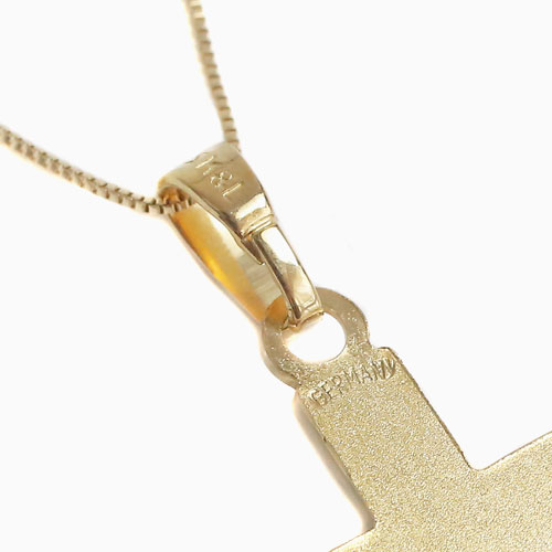 高級素材・9金を贅沢に使用した、落ち着いた白蝶貝のドイツ製クロスペンダント。シンプルなデザインだからこそ、ゴールド本来の高級感あふれる光沢が際立ちます。どんな服装にも合わせやすく、カジュアルはもちろん、オフィススタイルやフォーマルなスタイルに合わせて頂いても素敵です! また、ダイヤモンドやカラーストーンなど、お手持ちの一つ石ペンダントや、パールネックレスと重ね付けして頂いても素敵ですよ!印象の違う、華やかなペンダントとしてお使い頂けます。そのままつけても良し!他のペンダントと合わせれば、アレンジ次第でいろんな表情が楽しめる、毎日のお洒落に大活躍すること間違いなしのペンダントです!クロスとチェーンをつなぐ、バチカン部分には、「375」の刻印が施されており、シンプルでありながら、見えない部分にも手の込んだ、こだわりを感じます。