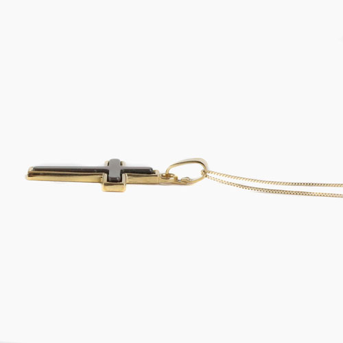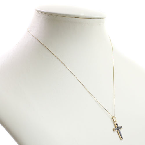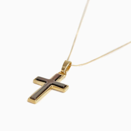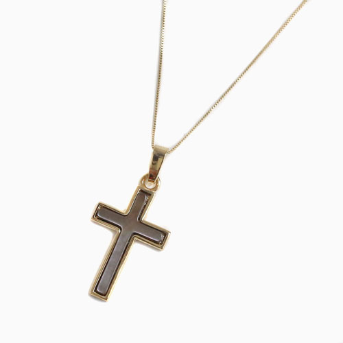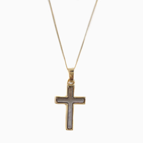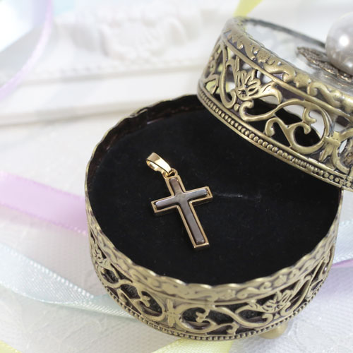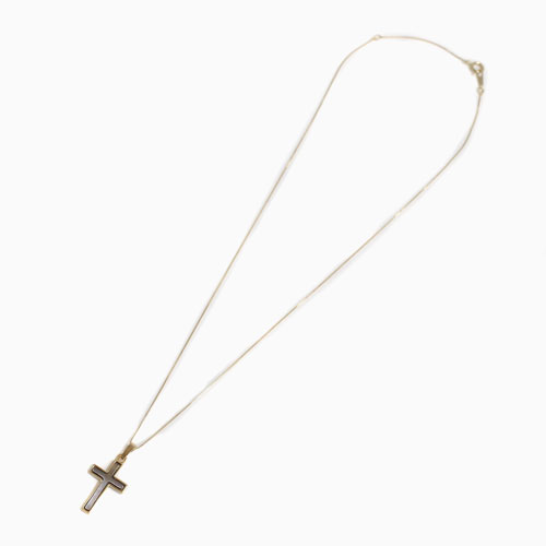高級素材・9金を贅沢に使用した、落ち着いた白蝶貝のドイツ製クロスペンダント。シンプルなデザインだからこそ、ゴールド本来の高級感あふれる光沢が際立ちます。