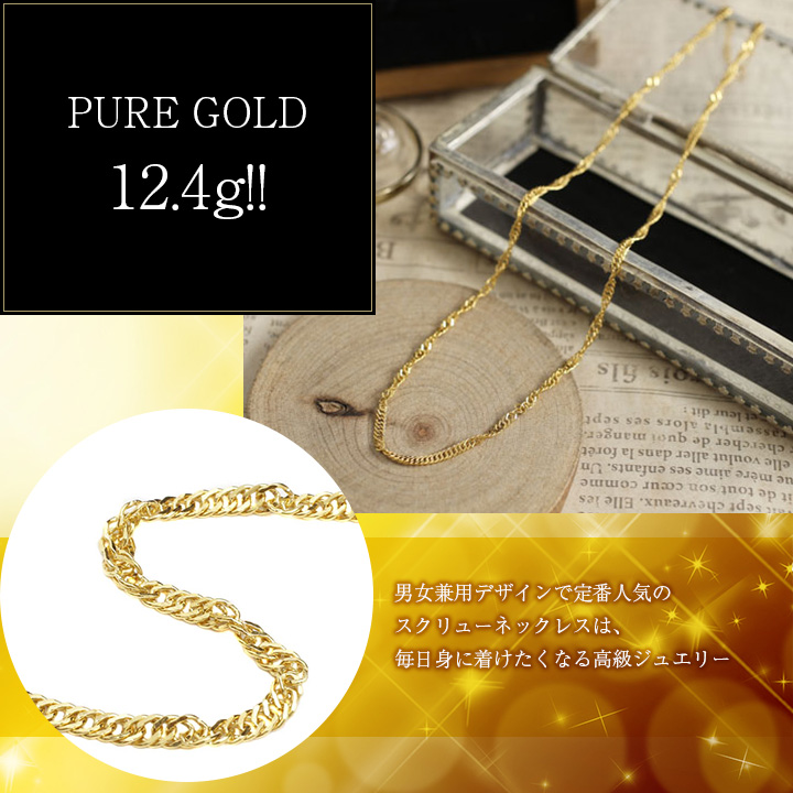 日本製 純金 K24 スクリューネックレス 男女兼用 50cm 12.4g 1945-NG12