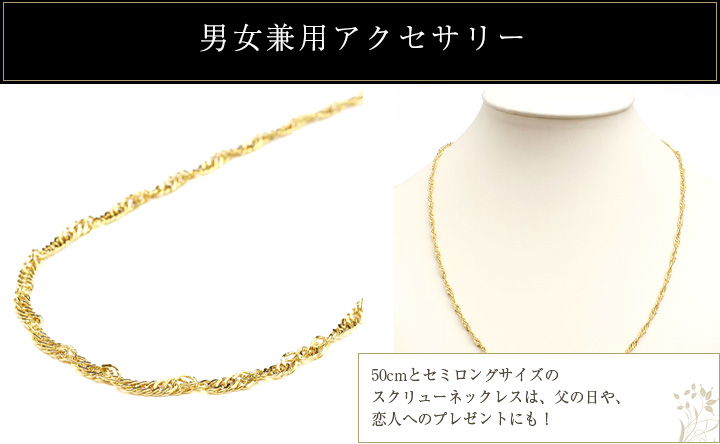 男女兼用デザイン定番デザインのスクリューネックレス、50cmは、性別年齢関係なくお洒落を楽しんでいただけます。 |