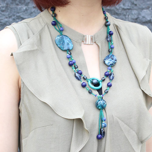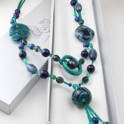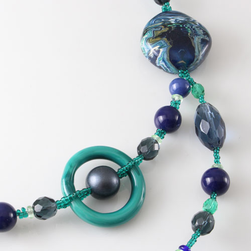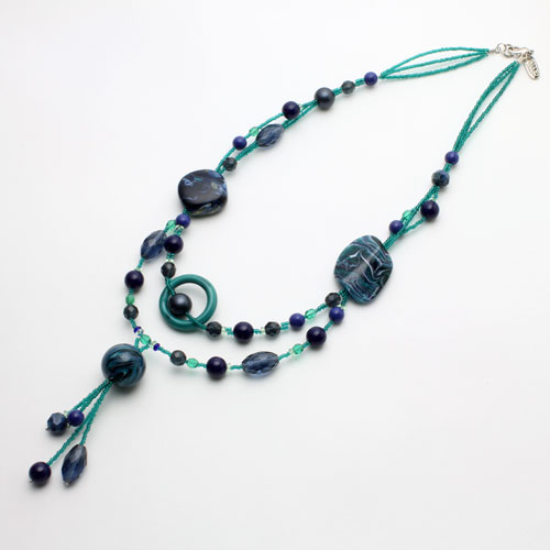 世界的に人気の2連とYタイプ合体、グリーンカラーの落ち着いた色合いで仕上げました。ベネチアンガラス、合金、樹脂を絶妙なバランスで使い、ボリューム感と軽い着け心地を実現。 これからの季節、プレゼントにもぴったりですよ。