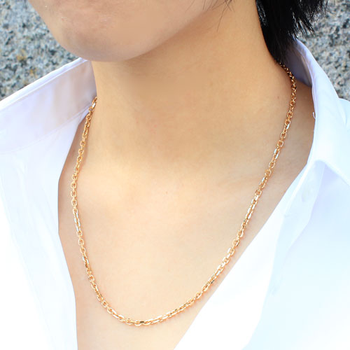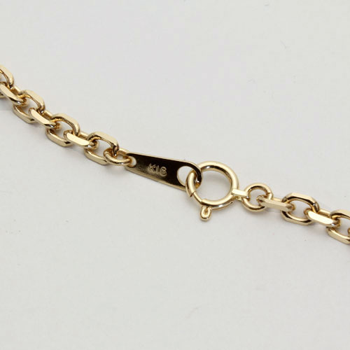 50cmのゆったりサイズの男女兼用4面カットアズキチェーンは、着け心地も抜群!!プレート部分には、「K18(刻印)」が有り、素材と品質の良さも証明されています。