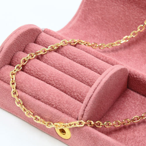 高級素材である、18金(K18)を惜しみなく使用した、気品あふれるチェーン。定番のキヘイチェーンはお持ちの方、人とは違うちょっとオシャレなチェーンをお探しの方におススメの華やか過ぎない、洗練されたデザインのチェーンの小豆。3.3mm幅のボリューム感とずっしり18金16.9gの満足感。お持ちの大きめのペンダントトップにも合わせやすく、普段の装いをぐっとエレガントに引き立ててくれます。