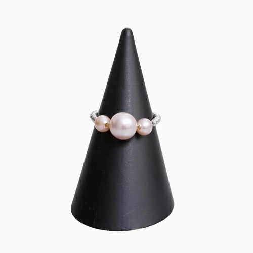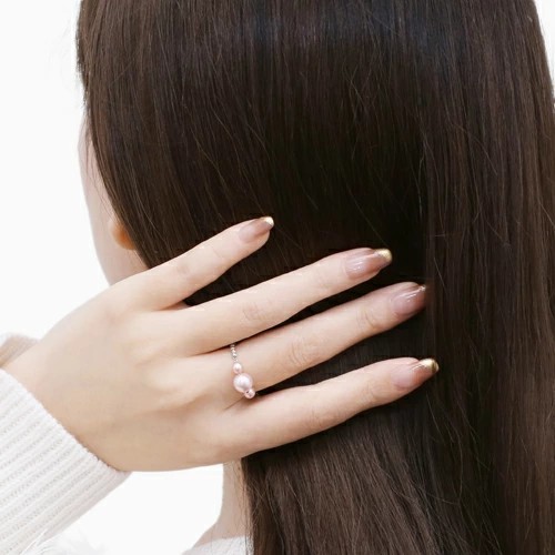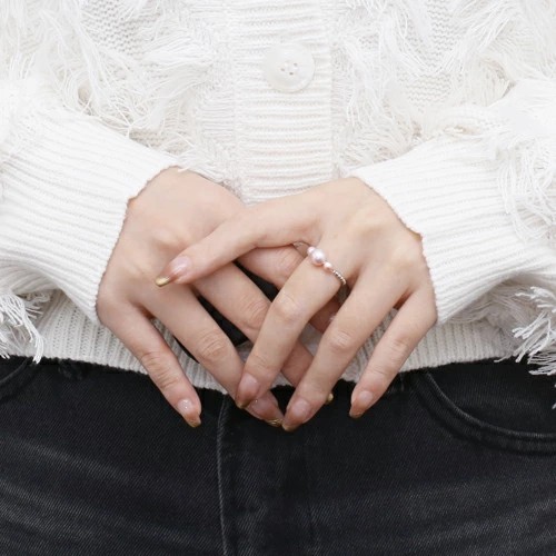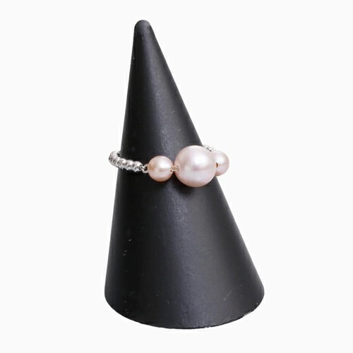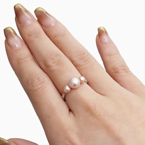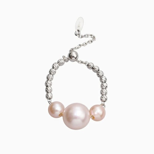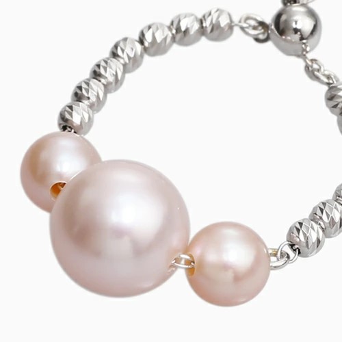 18金WGを使用した、おしゃれで洗練された淡水パールのフリーサイズリング。シリコン入ボールをセットしていますので、瞬時にサイズ7~22までお好みのサイズ、つけたい指に合わせて調整できるのがうれしい☆