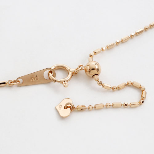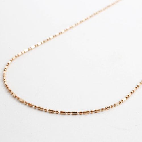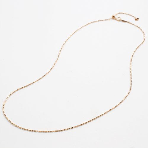 とっても便利なフリーアジャスター付で、50cmまでのお好みの長さに簡単に調節して頂けます。いつも、その日のお洋服に合ったぴったりの長さでお使い頂けるすぐれもの!そのままシンプルでおしゃれなネックレスとしても、お手持ちのペンダントトップを通していただいても。8面カットを施したボールチェーンのショート&ロング、しかもなかなか取扱いのお店がないピンクゴールド。シリコンボールで調整が楽々。スライド部分を前に回して、Yチェーンタイプのおしゃれな使い方もできる優れ物。スライドチェーン付でこの価格は大変魅力があります。おしゃれで飽きのこないカットボールチェーンは、ペンダントトップに華やかさを倍増させます。ジュエリー専門店ならではの珍しいピンクゴールドネックレスチェーンです。地金が高くなっている今、この価格ほかではなかなかないです。