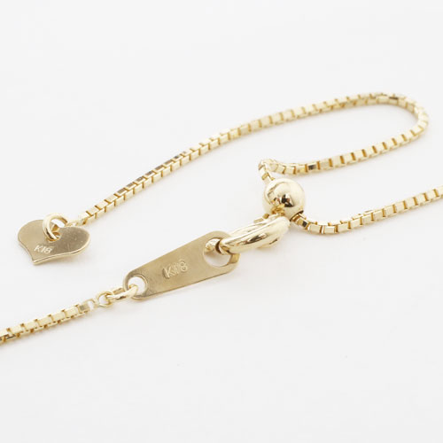 こちらのお店のネックレスを見ていた時、丁度セールになっていて細い18金ネックレスが欲しいかったのと、スライドチェーンで便利そうなので購入しました。小さいトップにピッタリでとても綺麗で長さ調節も出来てとても満足です。