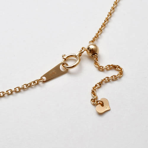 こちらのお店のネックレスを見ていた時、丁度セールになっていて細い18金ネックレスが欲しいかったのと、スライドチェーンで便利そうなので購入しました。小さいトップにピッタリでとても綺麗で長さ調節も出来てとても満足です。