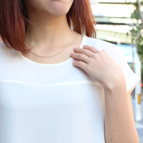 いつも、その日のお洋服に合ったぴったりの長さでお使い頂けるすぐれもの!そのまま細く繊細なネックレスとしても、お手持ちのペンダントトップを通していただいても。