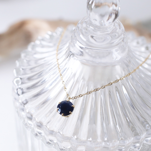 サファイアは、輝きの美しい、人気の落ち着いたカラーを使用!胸元での存在感は抜群です!!