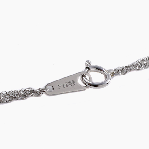 最高級素材である、純プラチナ(PT999)を惜しみなく使用した、気品あふれるネックレス。華やか過ぎない、洗練されたデザインのネックレスは、落ち着いた大人の女性にぴったりです。普段の装いをぐっとエレガントに引き立ててくれます。