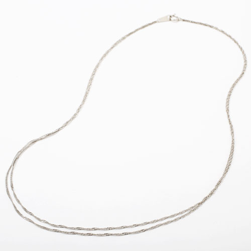 41cmと42cmという、違うサイズの2連により、繊細ながらボリュームも持たせ動くたびに微妙な輝きを演出します。プチサイズのダイヤペンダントなどとの重ね着けにおススメのアイテムです。プレート部分には、刻印が有り、素材と品質の良さも証明されています。