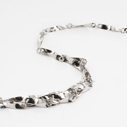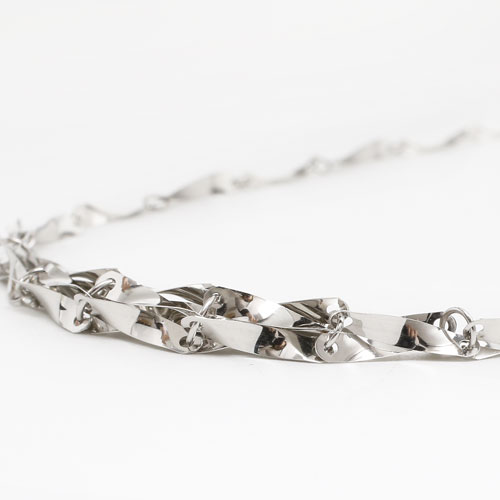 板状のパーツにひねりを加えたデザインは首筋から胸元にかけてボリュームを持たせており服装やシーンに合わせた使い方ができます。