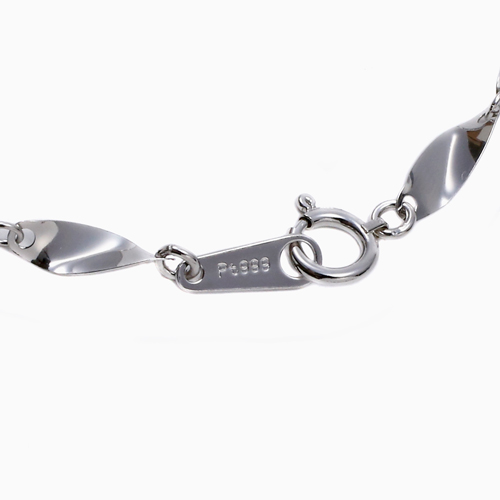 45cmという、ゆとりのあるサイズで、なめらかに肌に沿うネックレスは、着け心地も抜群!!また、貴金属製品の品位の証明の刻印、「Pt999」が入っており、素材と品質の良さも証明されています。