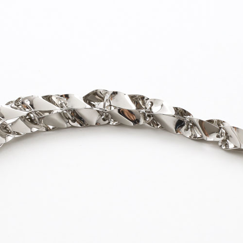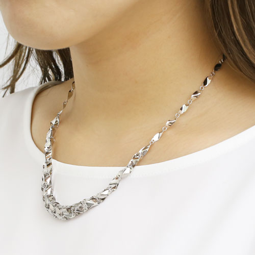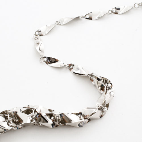 板状のパーツにひねりを加えたデザインは首筋から胸元にかけてボリュームを持たせており服装やシーンに合わせた使い方ができます。