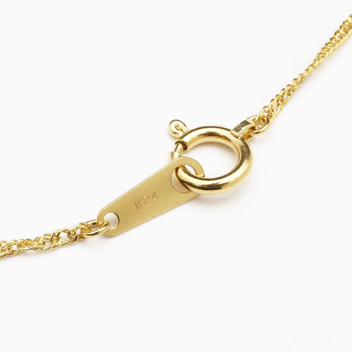 42cmという、ゆったりサイズで、ペンダント用のチェーンとしてもお使いいただけ、着け心地も抜群!!プレート部分には、「K24(刻印)」が有り、素材と品質の良さも証明されています。